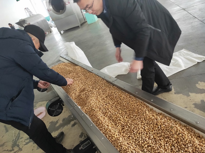 今日新疆乌鲁木齐蒋总不远万里莅临许昌智工参观考察大型炒货机,江总主要想使用高产量、省人工、自动炒制的炒货设备,用于炒制鹰嘴豆,经过与许昌智工销售经理的沟通,推荐使用许昌智工流水线炒货机,在保证省人工的前提下,更提升了炒制的品质和产量,随即江总开始使用流水线炒制看效果,经过开机、试炒、效果调试,江总对我们的炒货设备高度认可,于今日现场订购许昌智工大型炒货机!