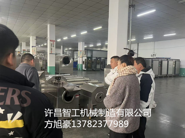 2025年12月18日,河南客户一行三人来到许昌智工电磁炒货机厂考察小型电磁炒货机炒制花生板栗