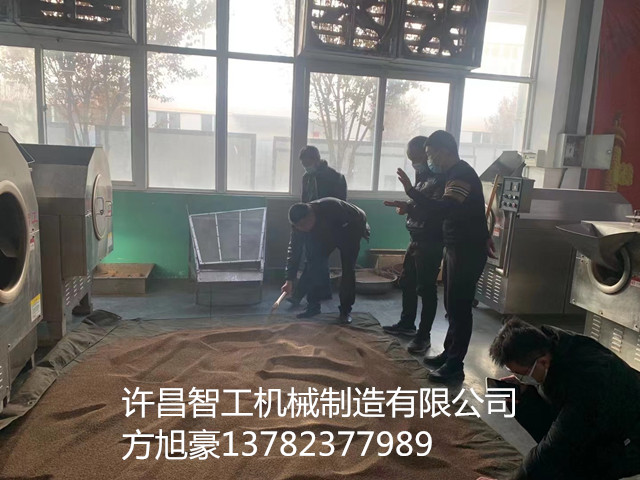 12月12日,河南客户一行二人带200斤芝麻来到许昌智工机械制造有限公司考察7-15型电磁炒货机。 DCCZ7-15型电磁炒货机,一锅可炒制200斤芝麻 芝麻经过水洗入锅40分钟即可炒出磨油芝麻的效果,炒出芝麻鼓肚饱满均匀一致出油率高,客户看了赞不绝口